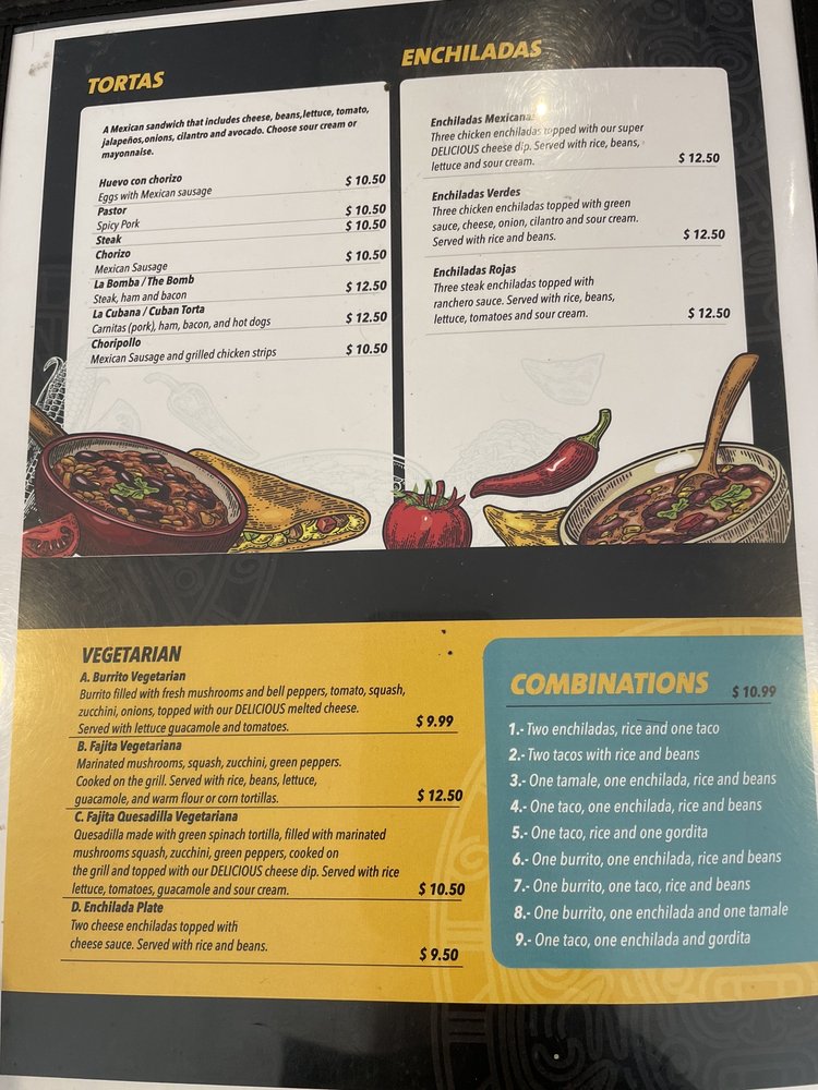 Notably, the menu includes delicious tortas, such as the indulgent La Cuban, combining multiple flavors in a single sandwich. For those craving something crispy, the Fajita Chimichanga promises satisfaction with its flavorful filling. With vegetarian choices available and generous portion sizes, there’s something here for everyone.